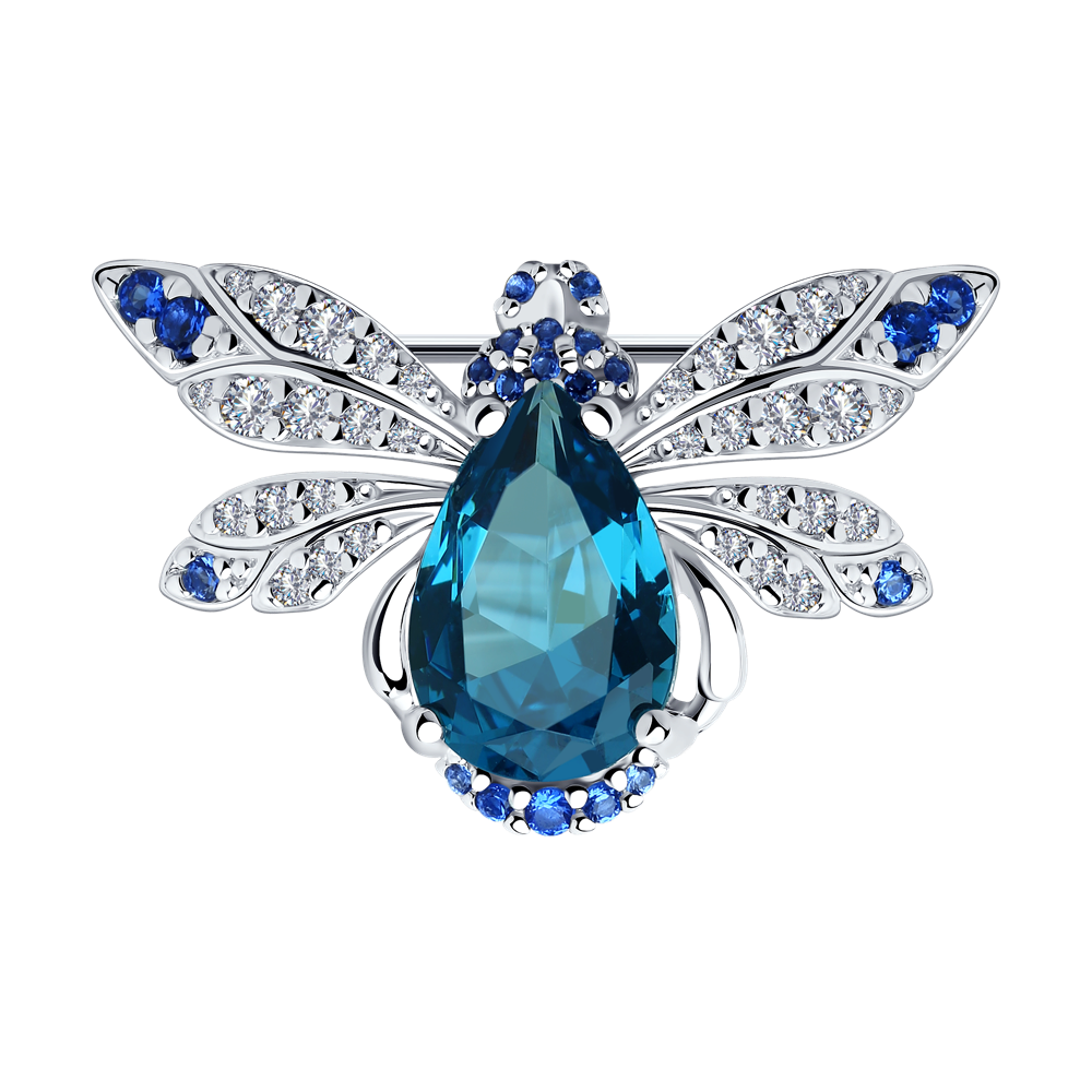 Брошь SOKOLOV - Серебро 925, Синтетический топаз Лонд, Фианит (арт. 92040052)