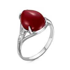 Кольцо Красная пресня - Серебро 925, Синтетический нефрит, Фианит (арт. 2339678Дн)