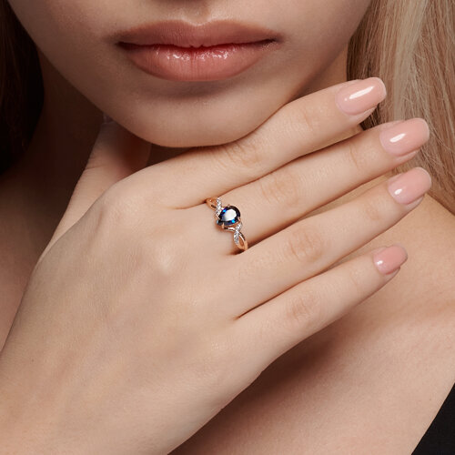 Кольцо SOKOLOV - Золото 585, Синтетический сапфир , Фианит (арт. 716327)