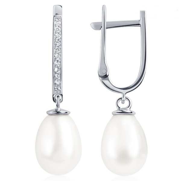 Серьги Platinum Lab. - Платина 950, Жемчуг культивированный, Бриллиант (арт. ПС-213-01)