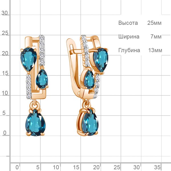 Серьги Аквамарин - Серебро 925, Топаз лондон, Фианит (арт. 45004808А.6)