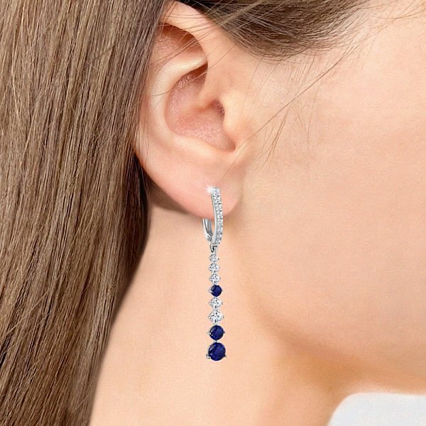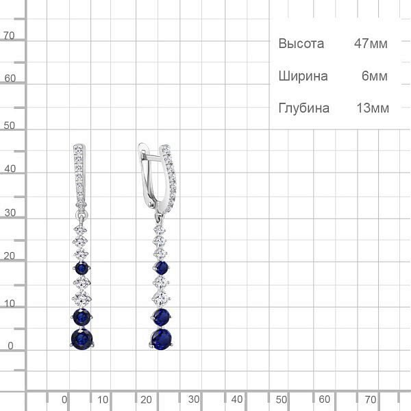 Серьги Аквамарин - Серебро 925, Синтетический сапфир , Фианит (арт. 49191АБ.5)
