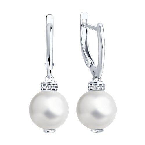 Серьги Diamant - Серебро 925, Жемчуг синтетический, Фианит (арт. 94-121-00092-1)