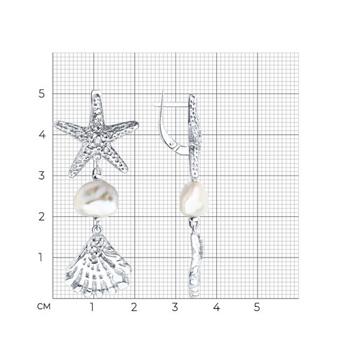 Серьги Diamant - Серебро 925, Жемчуг имитация, Фианит (арт. 94-321-00025-1)