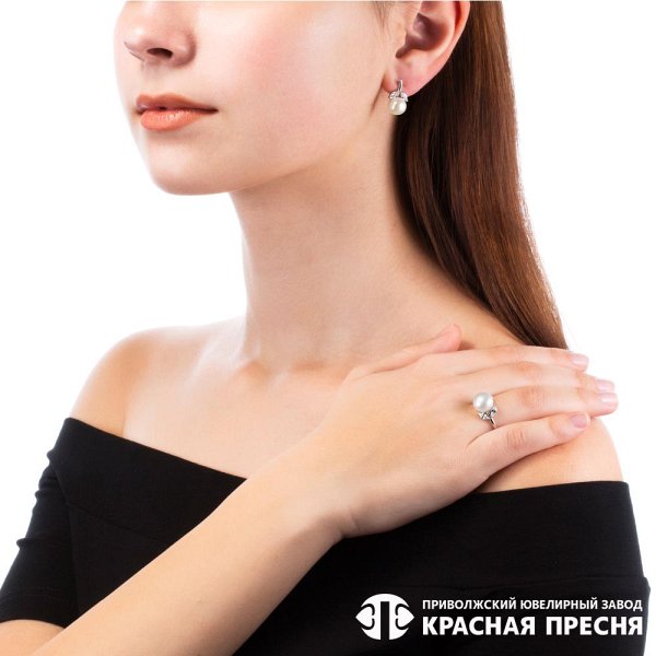 Вставка: Жемчуг культивированный, Фианит
