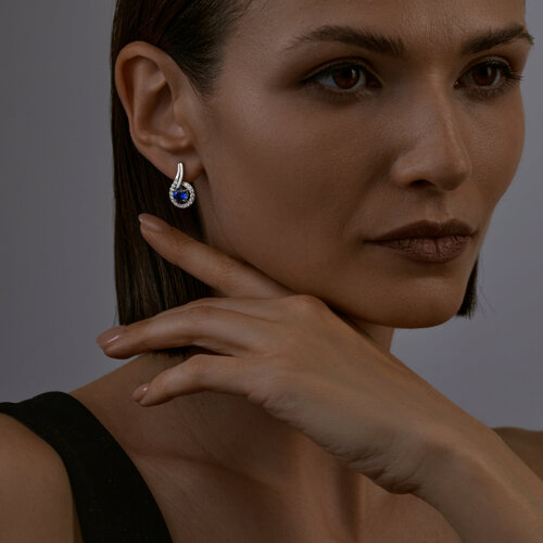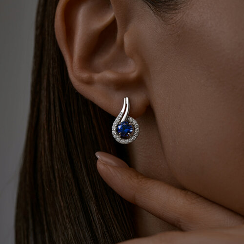 Серьги SOKOLOV - Серебро 925, Синтетический сапфир , Фианит (арт. 88020065)