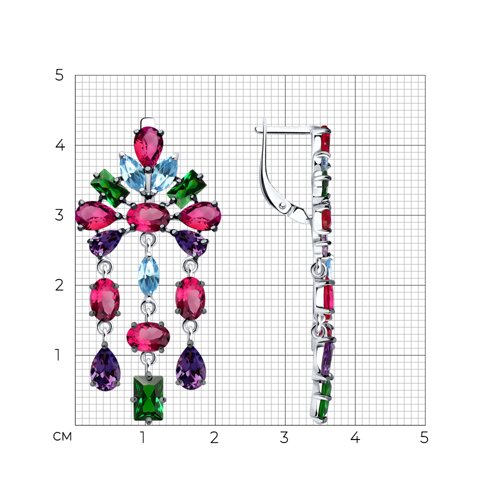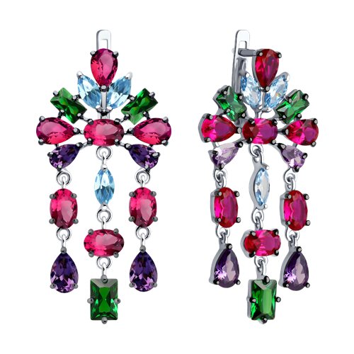 Серьги SOKOLOV - Серебро 925, Синтетический рубин, Фианит (арт. 94026621)