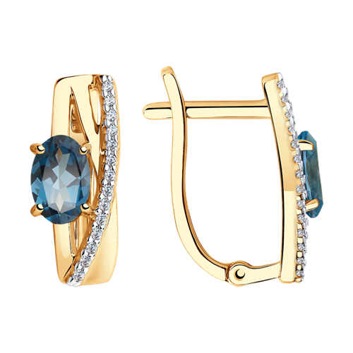 Серьги SOKOLOV - Золото 375, Топаз лондон, Фианит (арт. 37725985)