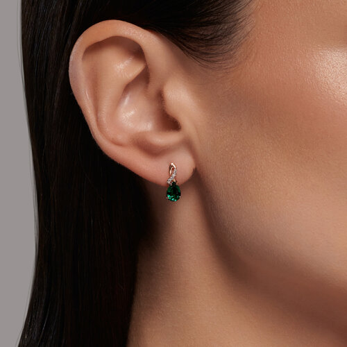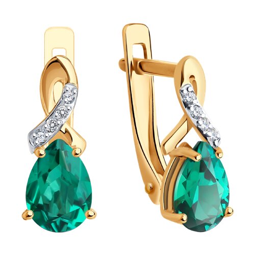 Серьги SOKOLOV - Золото 585, Синтетический изумруд, Фианит (арт. 728543)
